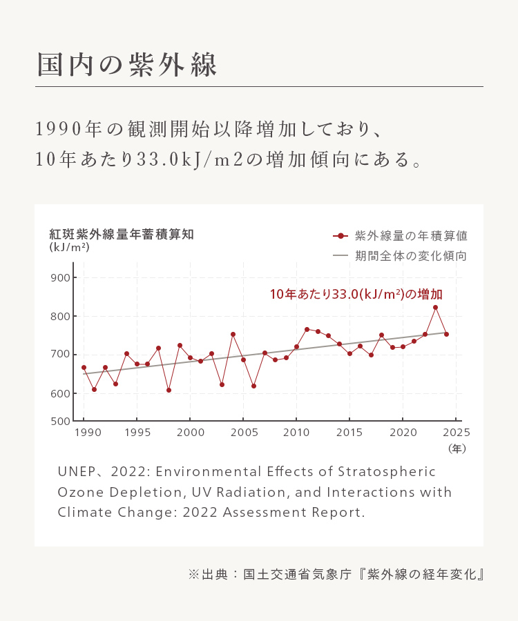 紫外線量は季節や天候によって変わるため、意図せず影響を受けやすい点も特徴です。