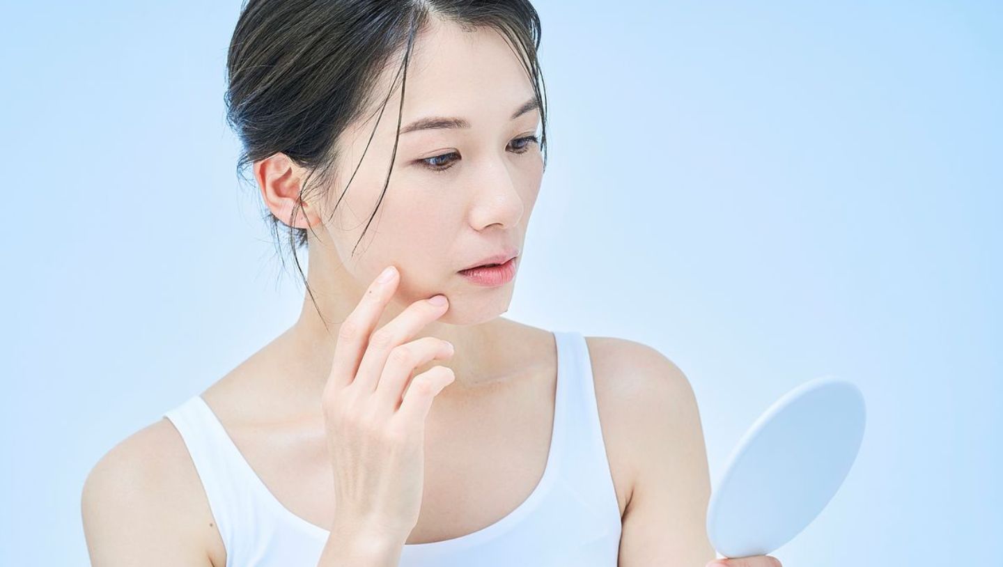 乾燥によって角層の水分量が低下すると、肌表面が粉をふいたように白っぽく見えることがあります。また、水分不足によってキメが乱れ、肌のツヤや透明感が失われやすくなり、グレーがかったくすみとして現れやすくなります。