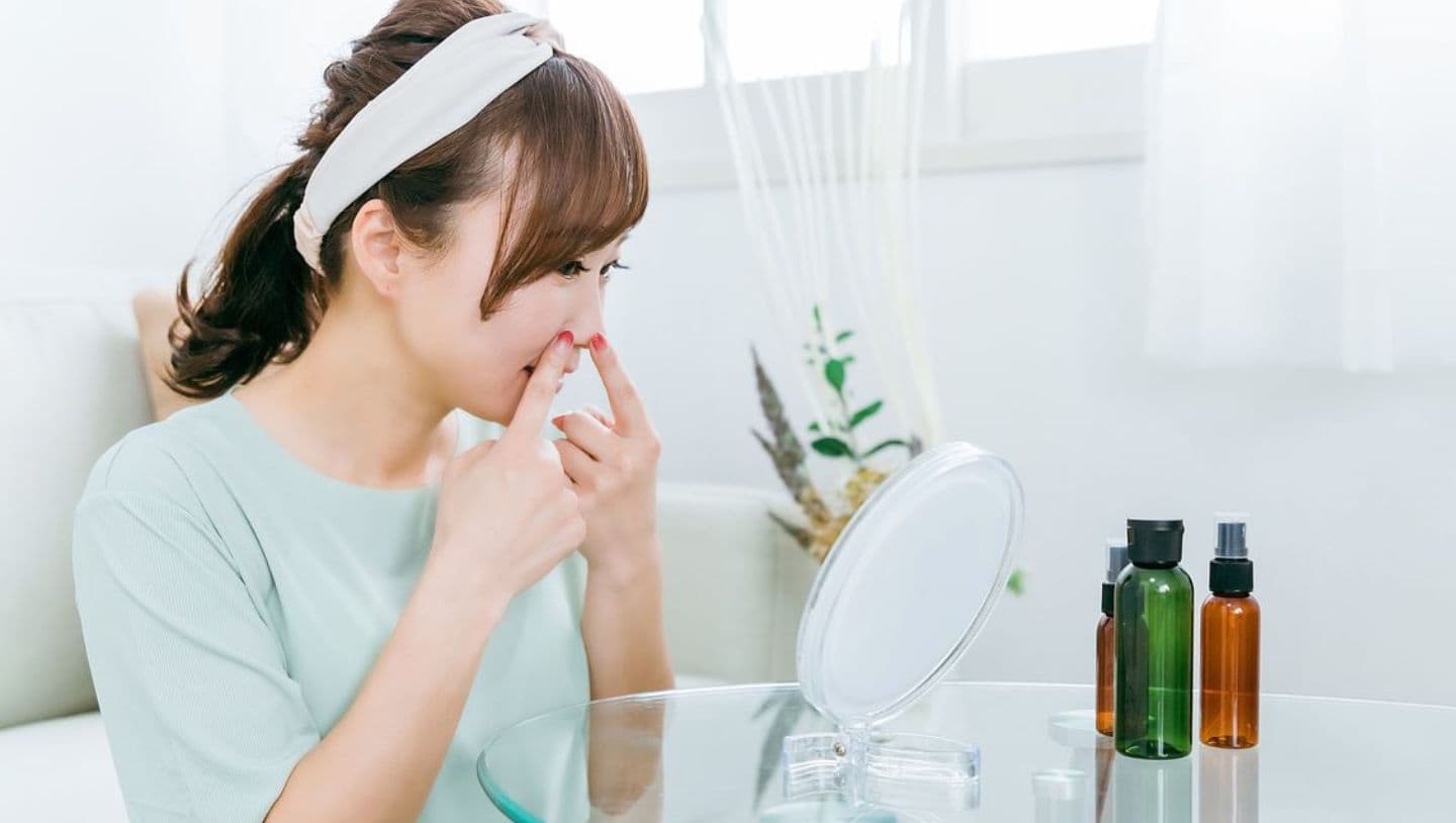 クレンジングや洗顔が不十分だと、メイク・皮脂・汚れなどが肌に残りやすく、それらが酸化することで黄ぐすみを引き起こします。特に鼻周りやフェイスライン、小鼻の横などは落とし残しが発生しやすい部位です。