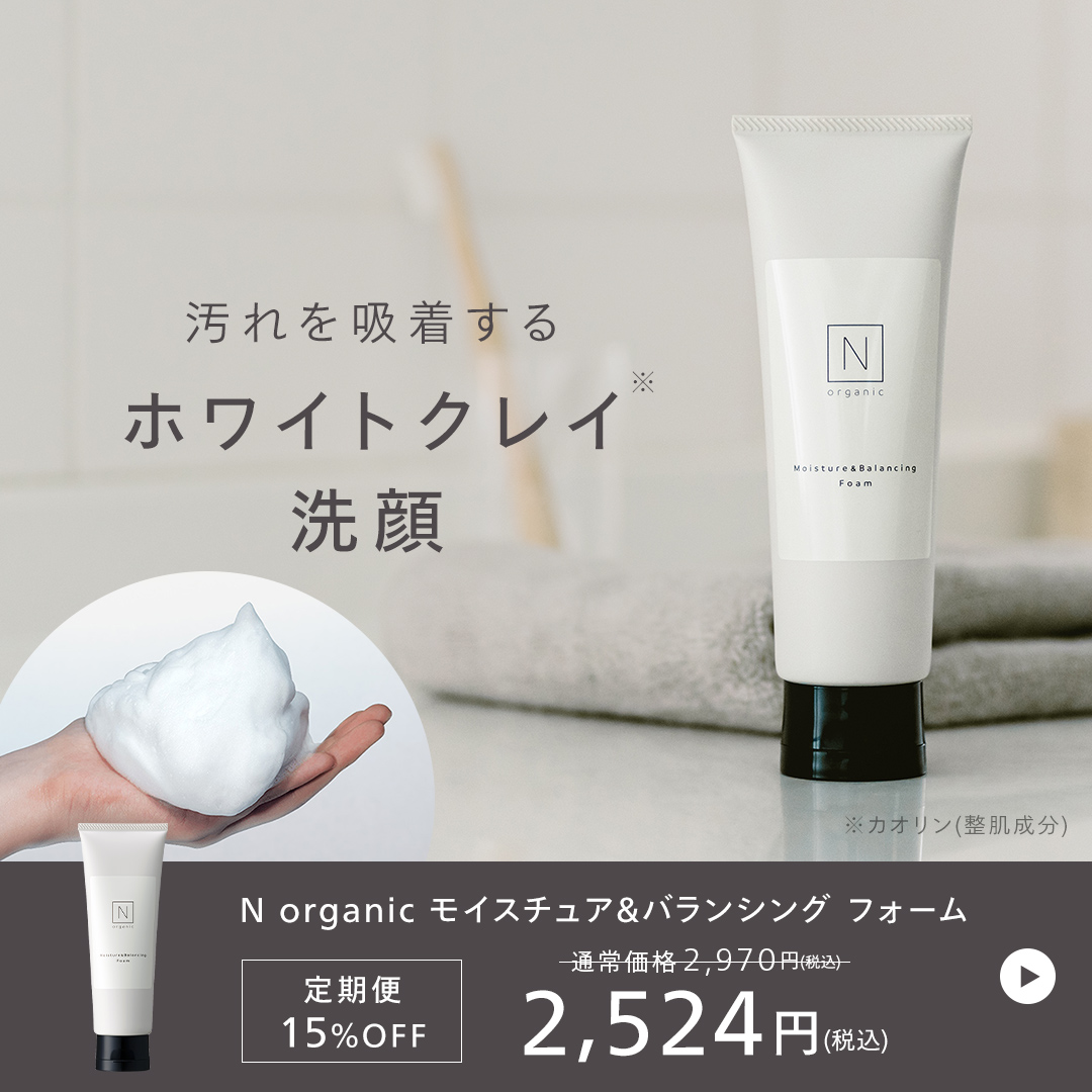 N organic モイスチュア&バランシング フォームは、きめ細かい泡が毛穴汚れに密着し、すっきりと洗い上げます。余分な皮脂や汚れを落としながらも、肌のうるおいは残す設計です。